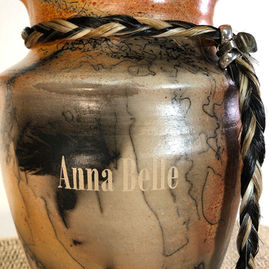 Horsehair pottery is a traditional art form made famous by the Navajo Indians. This pottery gets its name because the artist applies real horsehair onto red hot pottery to burn bold, unique designs into the clay. I create custom works of art by using the horsehair from your horse, inspired by your story, celebrating the bond between you and your horse.